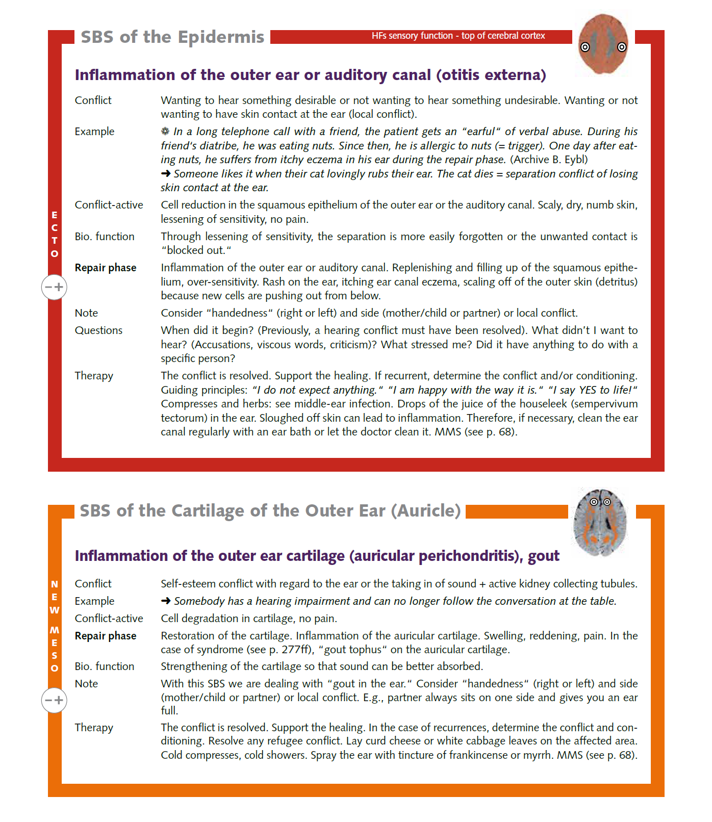 ![]() | 2022/07/25 ![]() ![]() ![]() One day, blood and a thin, light-yellowish-beige secretion came out of a client's ear. The blood had a certain smell (and the cause was therefore already identifiable!). There was no pain. | "attack against the ear" conflict | ||||