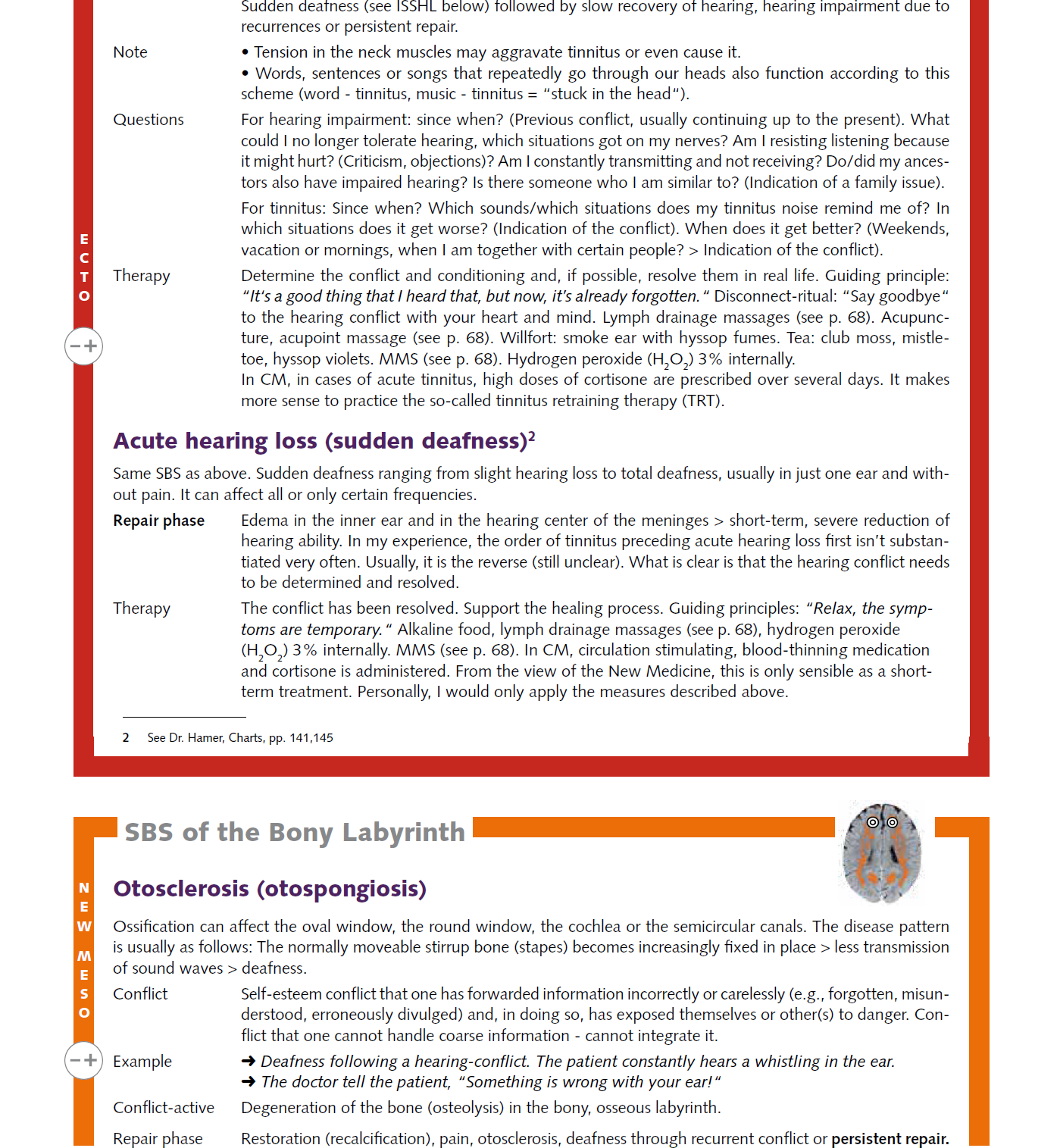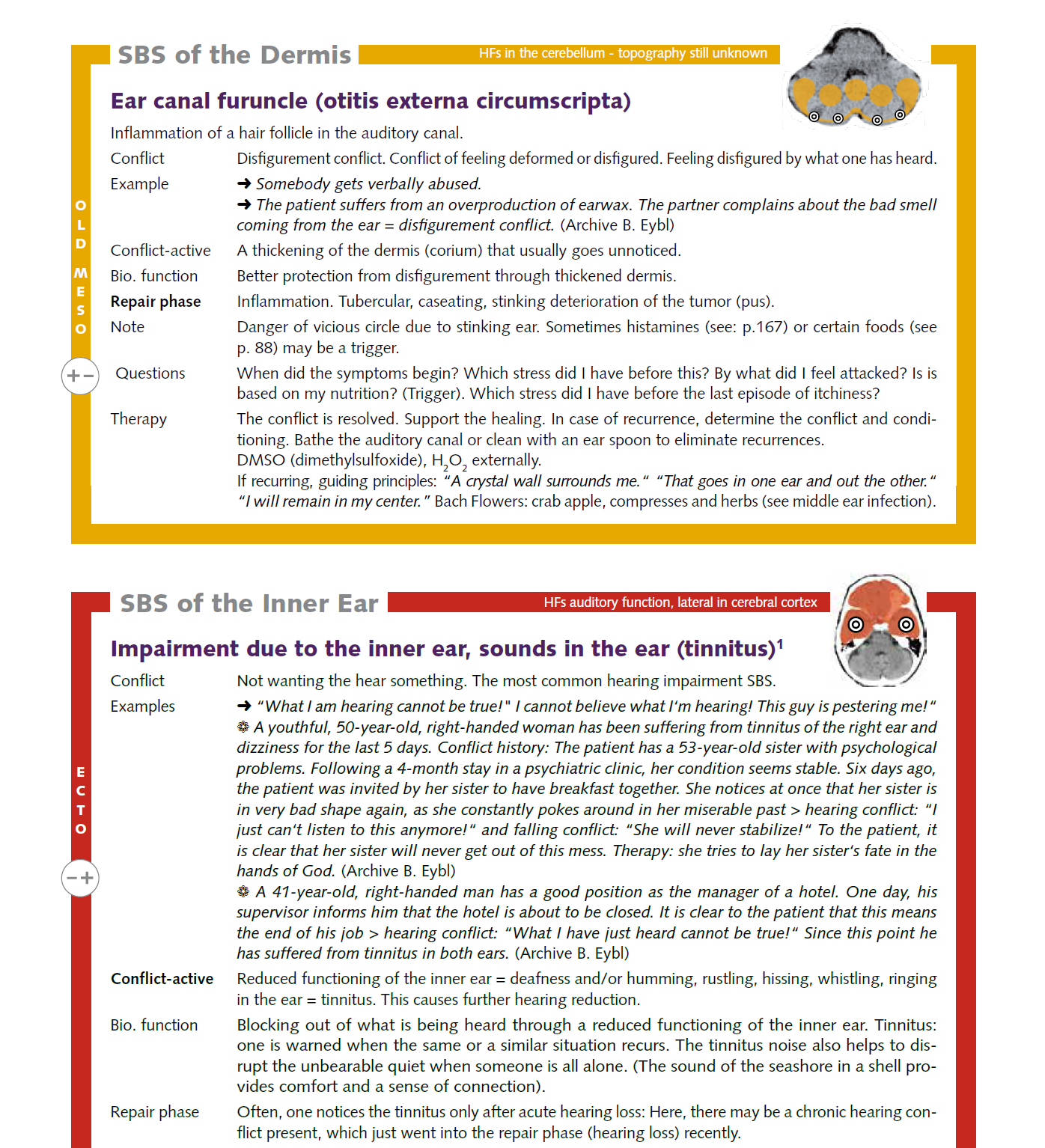 2024/10/09 ![]() ![]() A participant from our learning group, who is right-handed, had the following tinnitus experience: one week her son had increased problems with homework etc., so she told him to take his cell phone away until he had finished his homework. This was virtually the “maximum punishment” for him and represented a minor hearing conflict concerning the ectodermal hearing function of the cochlea ... | Ringing in the ears, hearing conflict | |||||