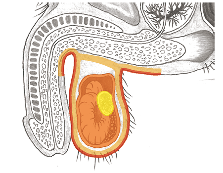| Examples | ➜ A boy receives a blow to the testicles. ➜ Verbal or perceived attack: “I‘ll have your balls!“ “A kick in the nuts!” Hydrocele was diagnosed in a 4-year-old boy – the doctors wanted to operate. It came to light that the parents were having a disagreement over the last few months. The mother wanted the father to have a vasectomy. = Substitute attack to the testicles conflict. As therapy, the parents should come to an agreement, thank the child and explain to him that he doesn’t need to carry this problem for them anymore. Two days after this explanation and gratitude, the testicles became inflamed and swelled even more (= repair phase). The parents again refused an OP. 10 days later, the hydrocele was completely gone without any surgical procedure. (Archive B. Eybl) A married man got a vasectomy and immediately regretted his decision after the operation (thinking about it day and night). Thereafter, whenever he had an argument with his partner, he associated it with his vasectomy or his testicles. Over the years, he developed a fist-sized swollen testicle (hydrocele) on his partner side = chronic persistent conflict. (Archive B. Eybl) |