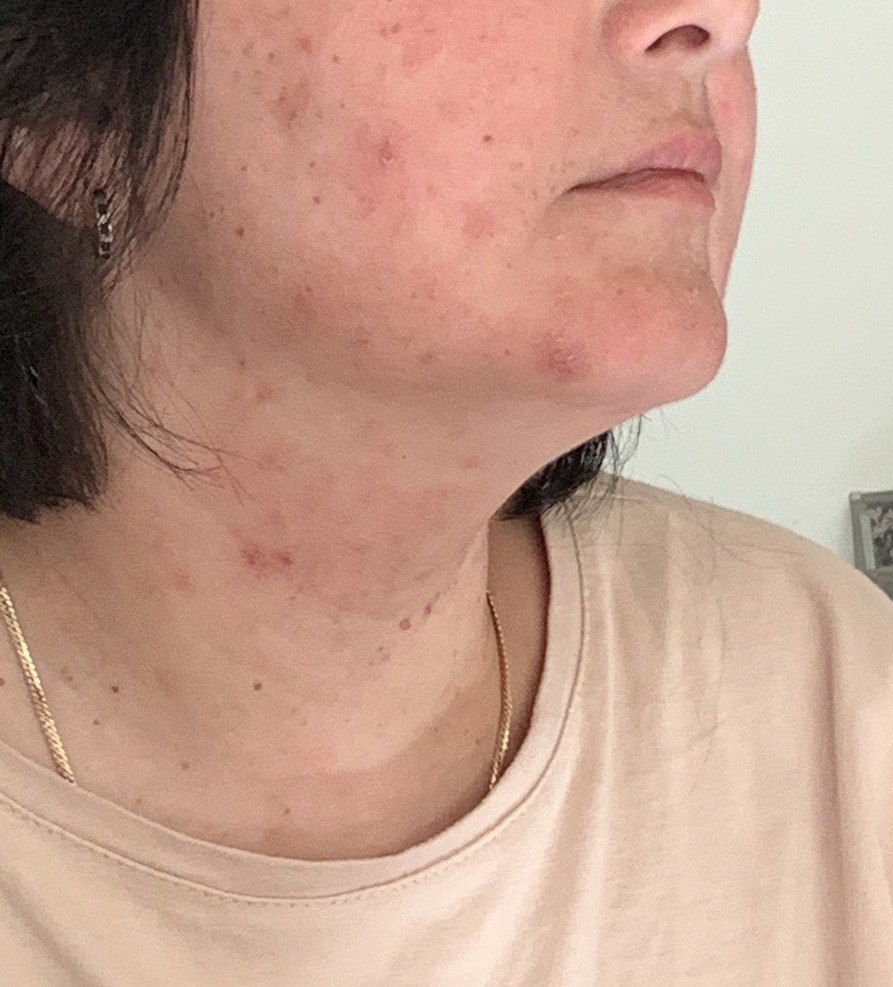 Die Symptome sind charakteristisch für die ektodermale Epidermis in hängender Heilung. Die Lokalisierung im Gesicht und am Hals deutet darauf hin, dass sie diesen Zustand als respektlos und sogar als ungerecht gegenüber sich selbst empfindet, dass er nicht so sein sollte.